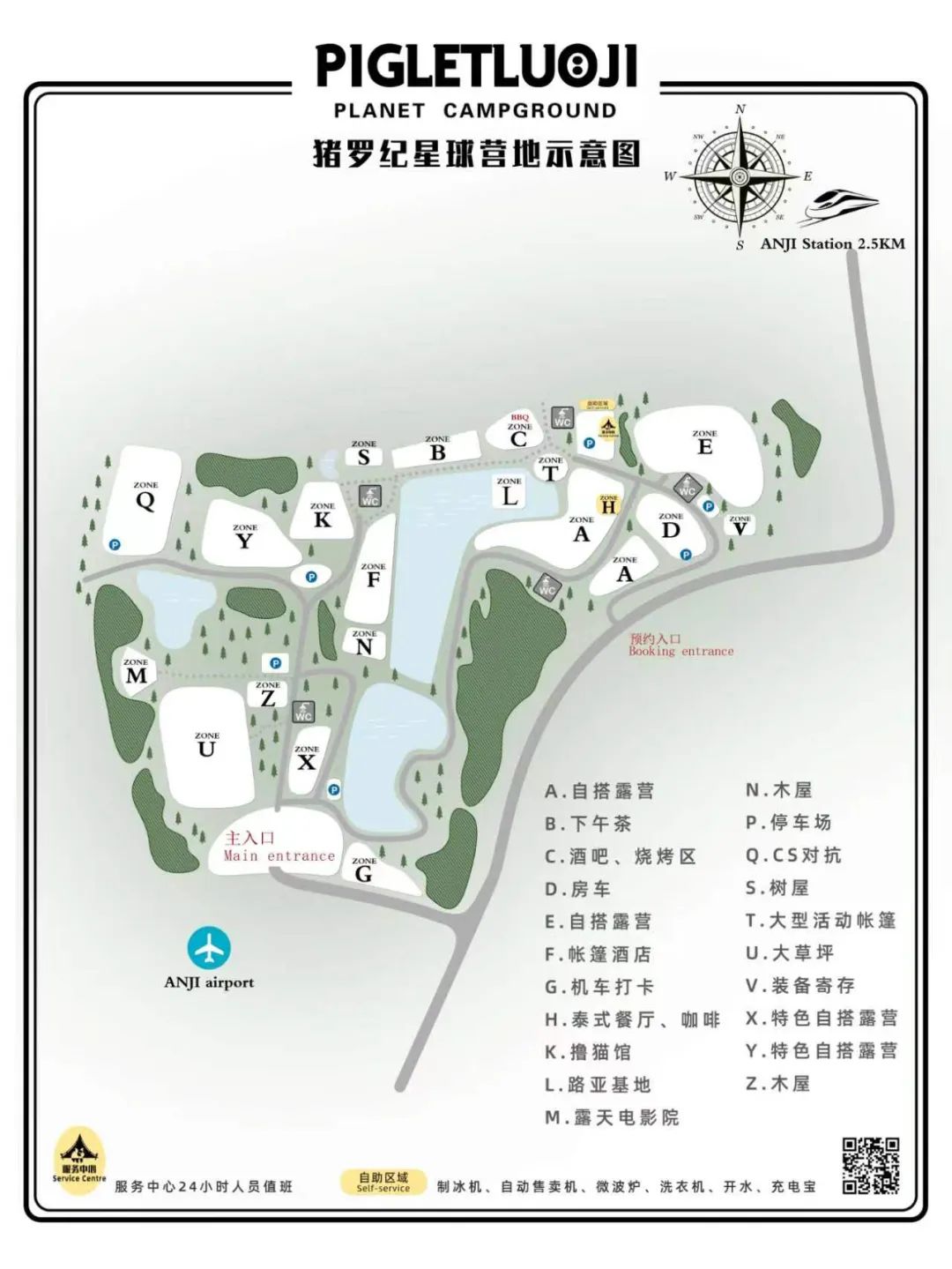 猪罗纪营地营地占地面积241亩,设有帐篷酒店区域、汽车营位区域、自由营位区域、森林特色餐厅、森林会议区域、猫咖区域、机车打卡、蔬菜水果采摘区域、森林音乐节区域等。