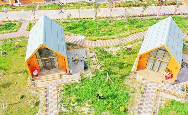 泰都新能源汽车营地总用地面积26331.24平方米,建筑面积4500平方米,于今年6月对外营业。包含6个小木屋、10个轻装别墅、8个房车。营地建设有标准双人房、大床房、家庭房、自助房等多种客房形式,装修风格轻松明快,为住户带来七彩般的童话体验。