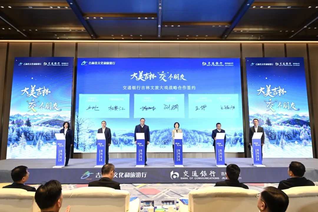 交通银行发布了“大美吉林 ‘交’个朋友”吉林文旅大戏项目,独家打造富有吉林特色的金融文旅交行专属方案;吉林市副市长刘大蔚分享文旅金融合作创新经验;交通银行吉林省分行与长影集团、北大湖滑雪度假区、万科松花湖度假区、中之杰、长春市动植物园、中国朝鲜族民俗园6家知名文旅企业签署合作协议。