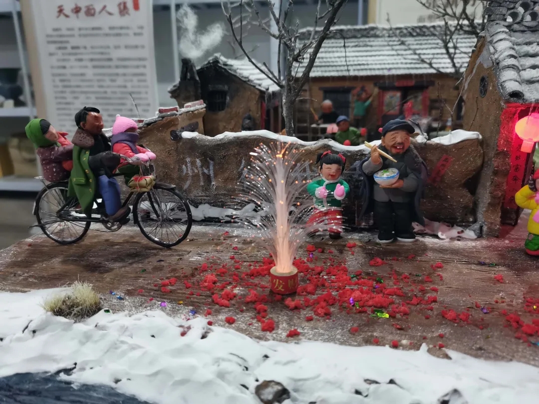 今年,面塑传承人张新芳从揉捏、雕刻到上色,融入历史、文化和民俗风情,以八十年代河南农村老家过年时的场景风貌为灵感来源,创作了面塑作品《春节》,把人们迎新春的热烈场景通过面塑一一展现。每一个细节都经过精心雕琢,走亲戚、挂灯笼、放鞭炮、滚雪球等场景都充满年代感,是不是也勾起了你的童年回忆?