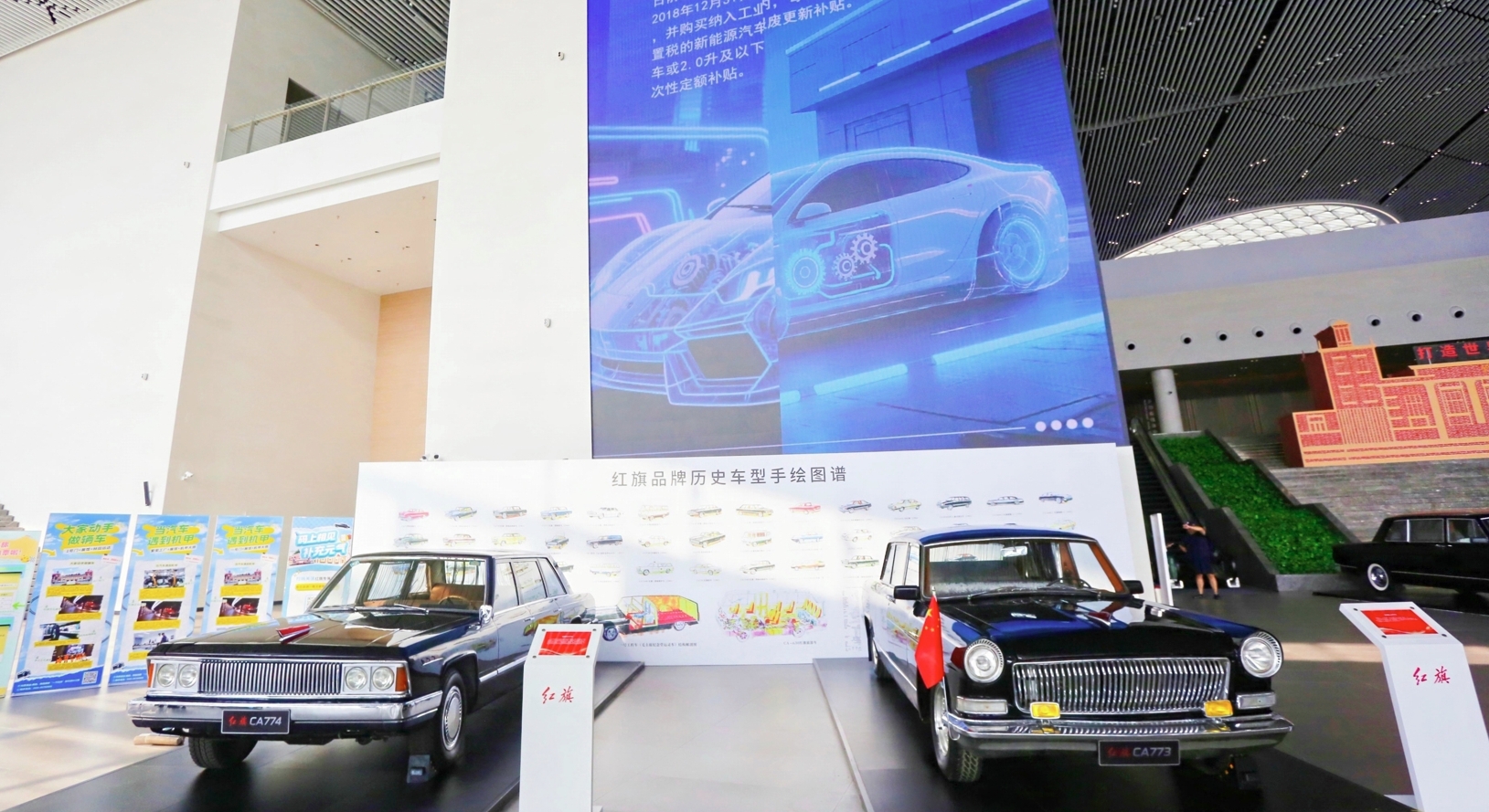 更令人眼前一亮的是,现场还搭配了按 1:20 比例微缩还原的 “一汽 1 号门” 实景景观。这一巧思将新中国第一辆高级轿车的诞生地,生动地 “搬” 到了观众眼前。当光影在展区内缓缓流转,仿佛开启了一场穿越时空的旅程,引领着人们回溯 70 余载的工业岁月。在与这些经典车型和实景景观的近距离接触中,人们得以真切触摸到一汽从 “汽车工业摇篮” 起步,一步步迈向 “世界一流车企” 的壮阔征程,感受那份跨越时代的工业豪情与发展力量。