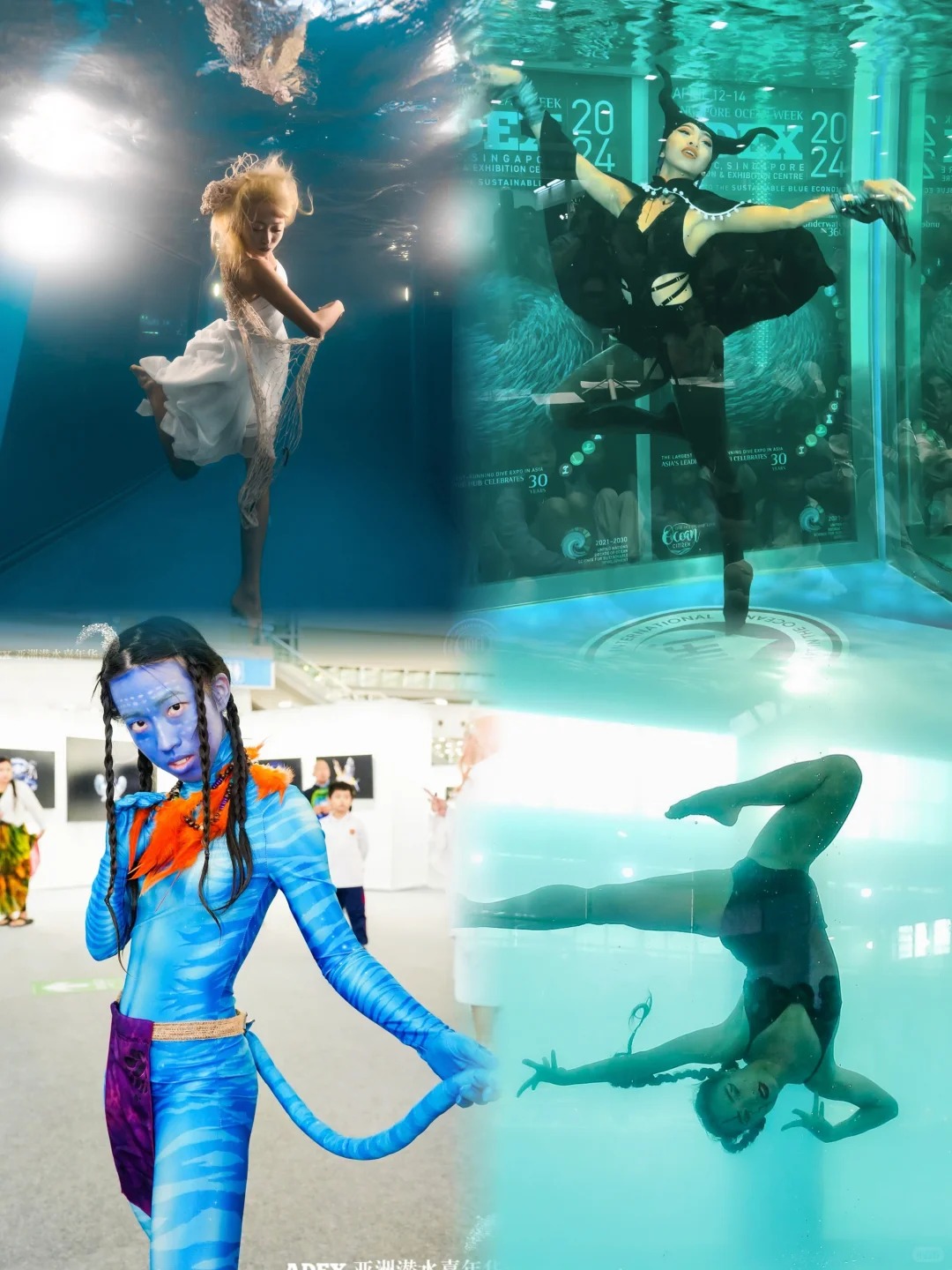 国际自由潜水高手化身“美人鱼”水下共舞,视觉震撼力MAX,还能传递海洋环保理念。