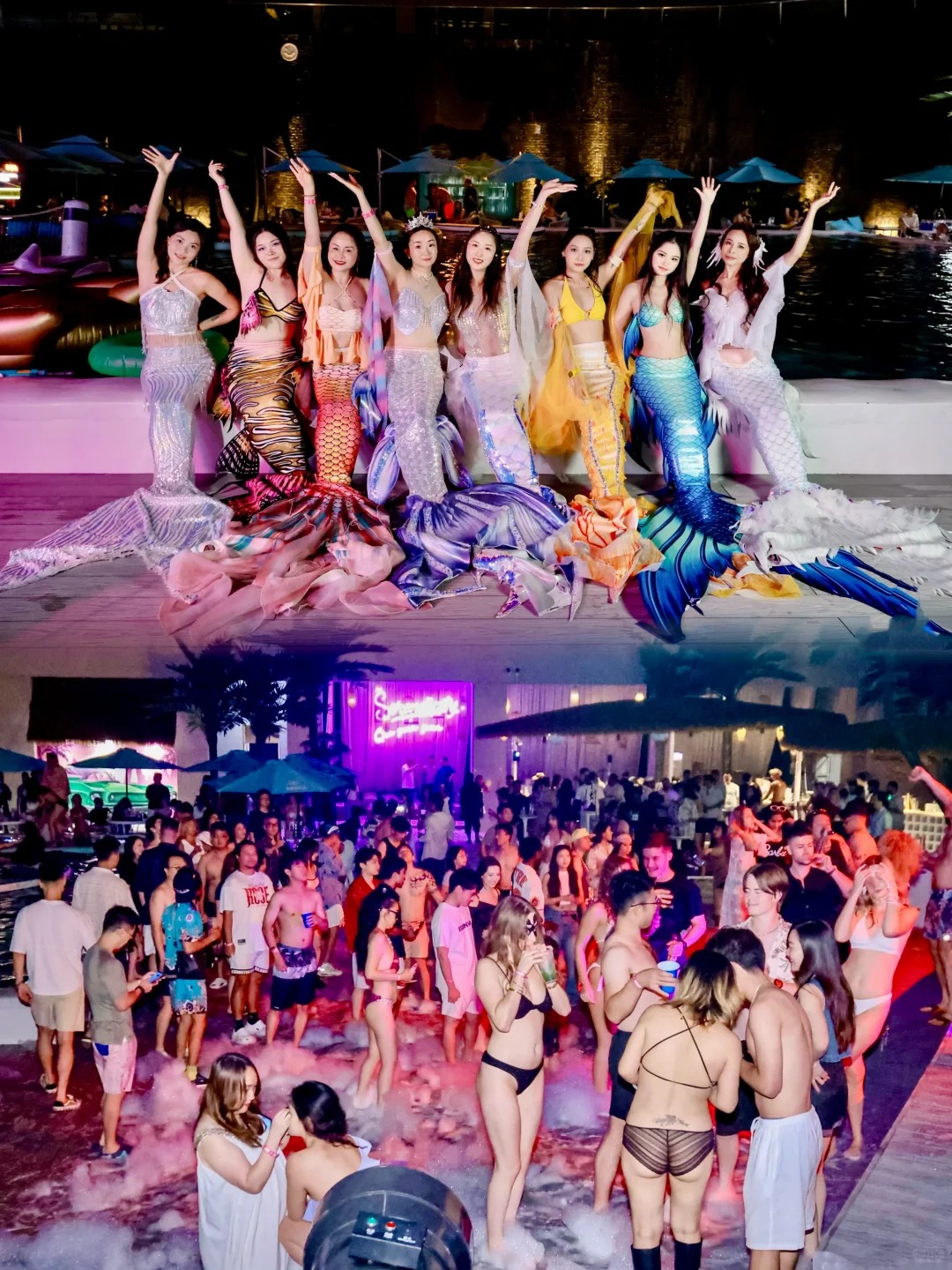 电子音乐+泡沫火山+烟花秀,全部搬上海浪舞台!跟着光影一起蹦迪,氛围感直接拉满。