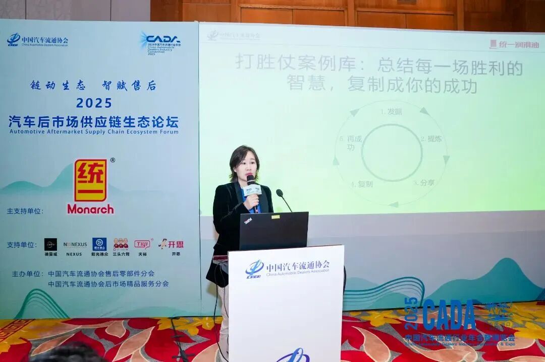 中国汽车流通协会售后零部件分会副理事长兼秘书长李彤梅、后市场精品服务分会秘书长张保泉分别发表了主题演讲,统一石化、德雷威、一汽大众、海圳、支付宝、纳恪思等企业嘉宾分享了实战案例,从宏观趋势到微观实践,从内部增效到出海破局,共同进行了一场关于未来生态的头脑风暴。