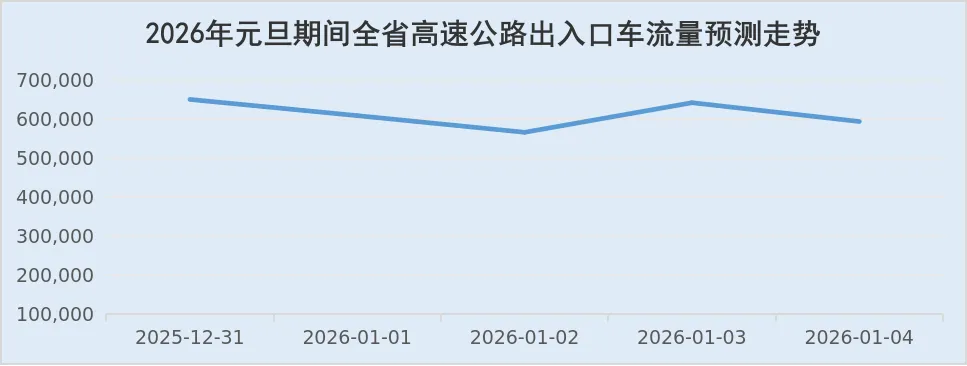 从往年同期各时段车流量分析来看,出行高峰预计出现在2025年12月31日16时至19时,返程高峰预计出现在2026年1月3日15时至18时。