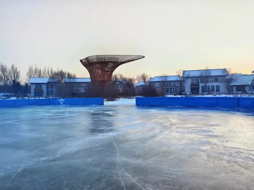 三佳湖公园冰场依托城市水系而建,是便民利民的公益性室外冰场。
