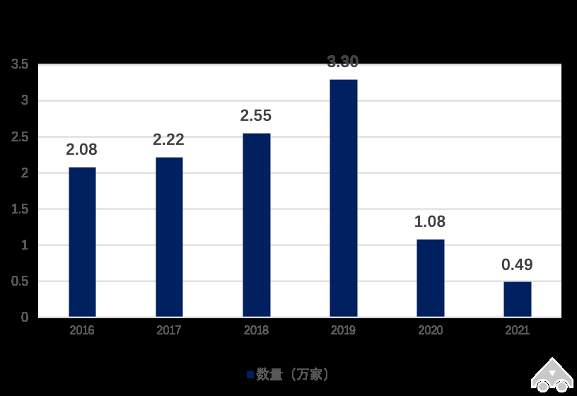 露营地产业为例,产业投资增长缓慢,涉及重资产型的营地数量增幅不大;2001年注册企业数量首次突破2位数,2013年突破3位数,2019年突破四位数,达到峰值1124家,但之后增长率开始大于以两位数的速率下降。